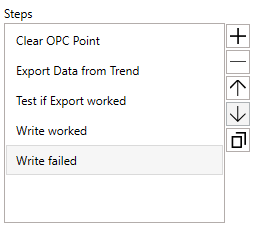 Go back to the Export Data from Trend step. Set On Fail to be Go to Step Write Failed and On Success to Go to next step.
