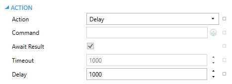 If you would like to be sure your command has completed before the batch moves onto the next step, check Await Result. When Await Result is checked, the step will wait for the command to complete, up to a maximum of the Timeout value (which is specified in milliseconds). If the timeout is met before the result is returned, the batch will perform the On Fail action (specified in the Continue With section).