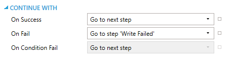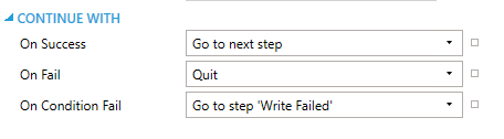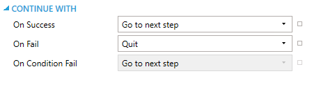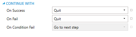 In the Continue With section, make sure that On Success is set to Go to the next step and On Fail is set to Quit.