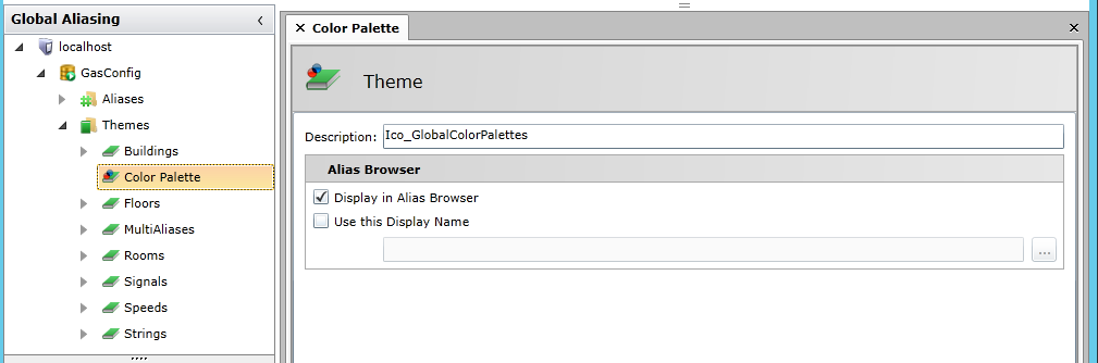 Click on the Aliases branch and you'll see the Color Palette theme in the right-side window, as shown below.