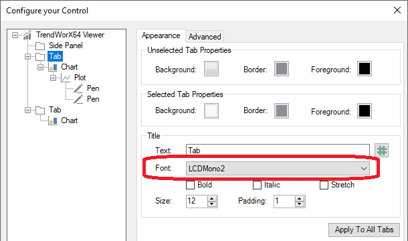 After selecting the font files, these fonts will be available to be selected anywhere in GraphWorX64 or its controls where a font can be chosen.