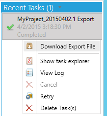 Export Project in Recent Tasks Pane