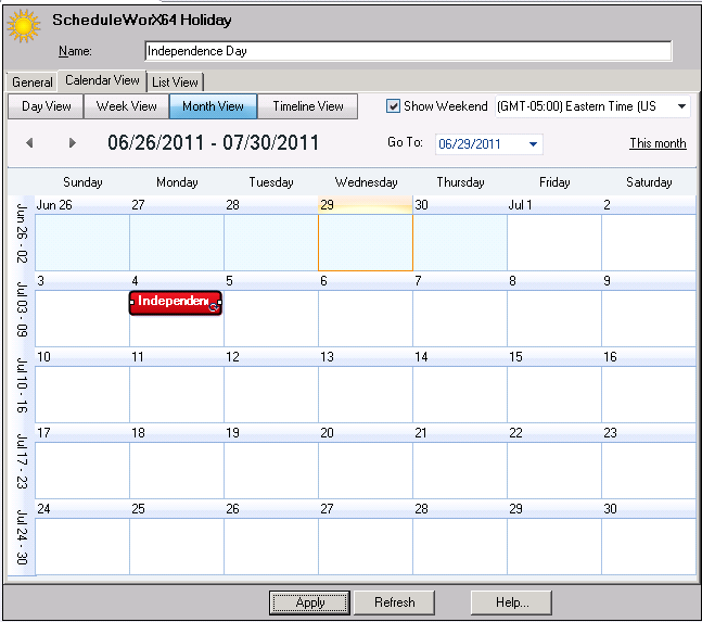 Click OK to save your changes and return to the Edit Event dialog box, then click OK again to return to the main Calendar View tab settings in the ScheduleWorX64 Holiday Properties.