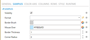 On the Samples page, you can define a custom number format for sample values. Hiding sample labels in data diagram can significantly improve performance and is highly recommended when the actual sample value is not as important as the sample color. It is recommended to set the Border Thickness to zero if you are requesting a large number of samples.