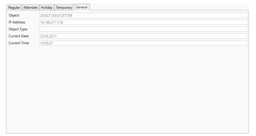 General Tab shown in the Schedule Control (from an N1 Schedule View configuration) in a GraphWorx64 Display in Runtime