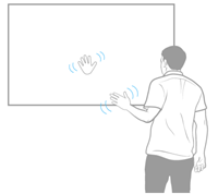 Users can wave their hand to start interaction. They can use their hands or body to interact with 2d and 3D objects. Commands vary according to settings.