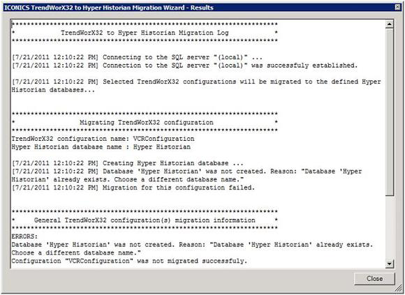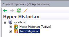 To facilitate your initial setup, there is a wizard that can migrate TrendWorX32 configurations to Hyper Historian configurations. The wizard creates a new configuration database in Hyper Historian, and populates the new configuration database with the TrendWorX32 data you are migrating.