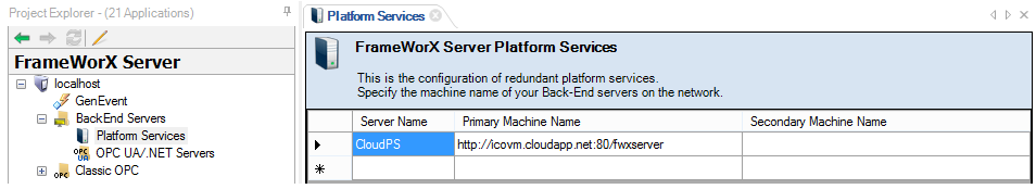 Go to FrameWorX Platform Services under BackEnd Servers in the FrameWorX Server configuration.