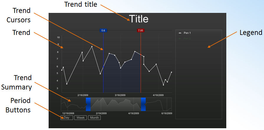 If you have used a desktop version of TrendWorX64 (either TrendWorX64 Viewer in Workbench Classic or TrendWorX64 Viewer in the Workbench), you'll notice that the layout and configuration options in the TrendWorX64 Viewer are fairly similar. However, the TrendWorX64 Viewer does differ from its desktop counterparts in several important ways. In particular, the TrendWorX64 Viewer: