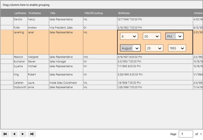 GridWorX configuration should primarily be handled in the desktop configuration mode. However, certain data types can be specified in runtime mode such as dates. Selecting the cells containing this sort of data will allow for changes to be made.