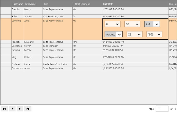 GridWorX configuration should primarily be handled in the desktop configuration mode. However, certain data types can be specified in runtime mode such as dates. Selecting the cells containing this sort of data will allow for changes to be made.