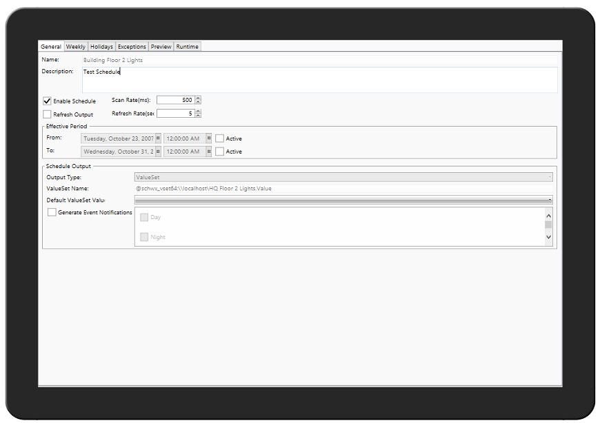 Advanced Tab Settings in the Schedule View Control in GraphWorX64