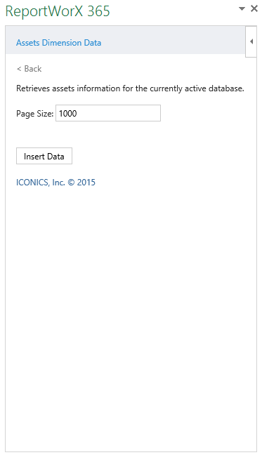 The Assets Dimension Data data source within ReportWorX 365 retrieves asset information for the currently active database.