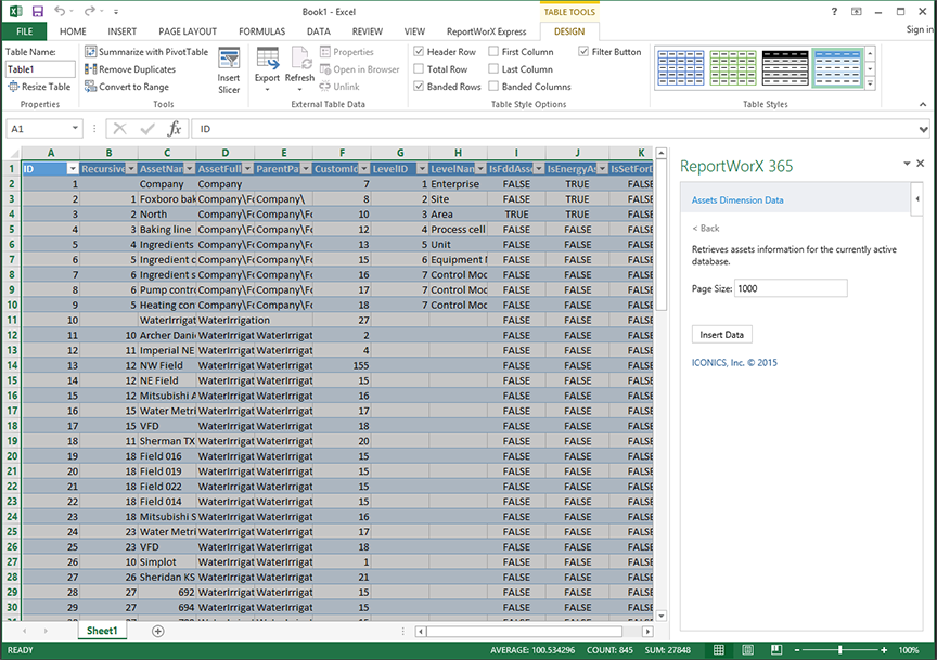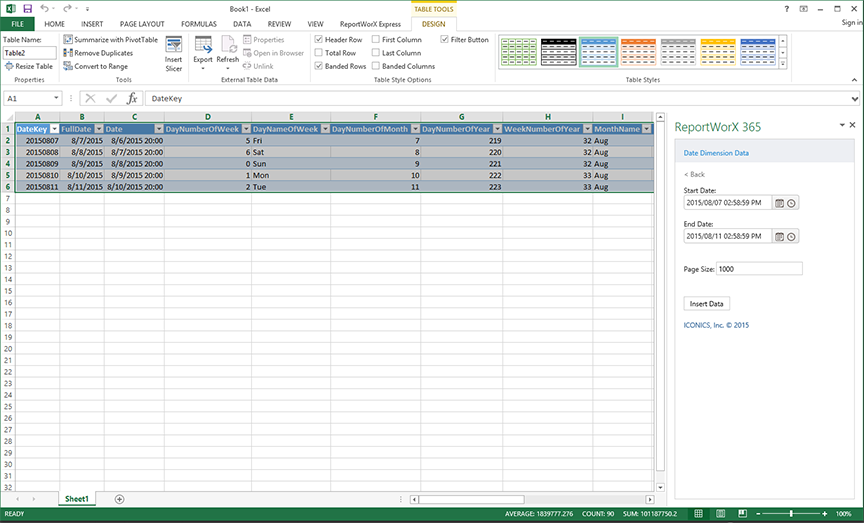 Selecting Dimension Data as a data source in ReportWorX 365 allows you to pick from either Asset Dimension or Date Dimension. Either of these sources provides formatted data that is ideal for pivoting within Microsoft Excel.