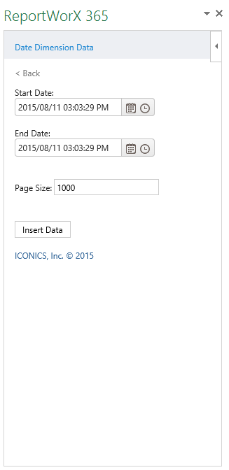 The Date Dimension Data data source within ReportWorX 365 retrieves asset information within the user's specified date/time range for the currently active database