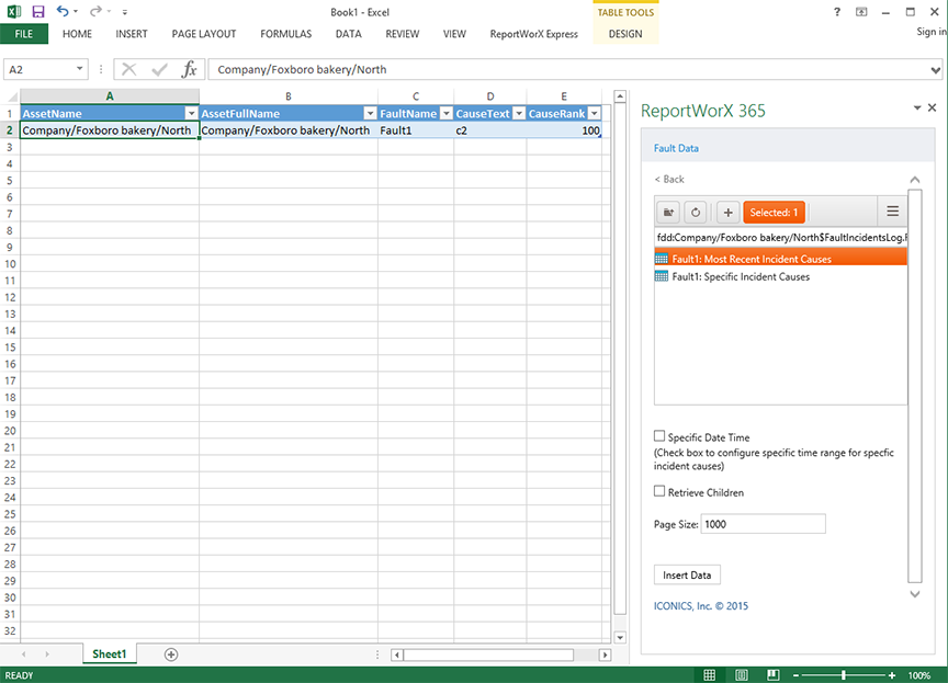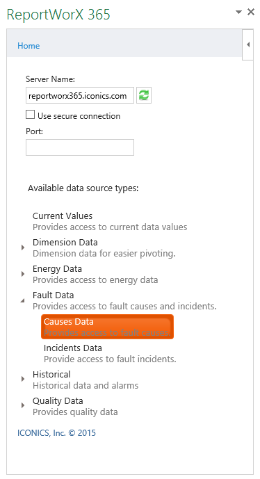 The Causes Data data source provides access to fault causes for use within Microsoft Excel.