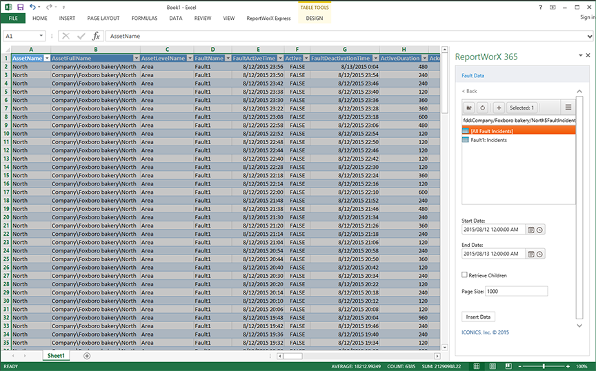 Fault Data Selected in ReportWorX 365