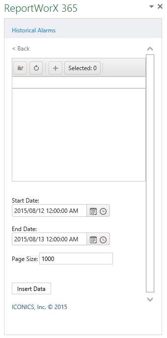 The Historical Alarms data source provides historical alams for use within Microsoft Excel.
