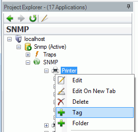 You can add a new item or, specifically a new SNMP Tag, to a device in the Project Explorer on the SNMP Connector in the GENESIS64 Workbench.