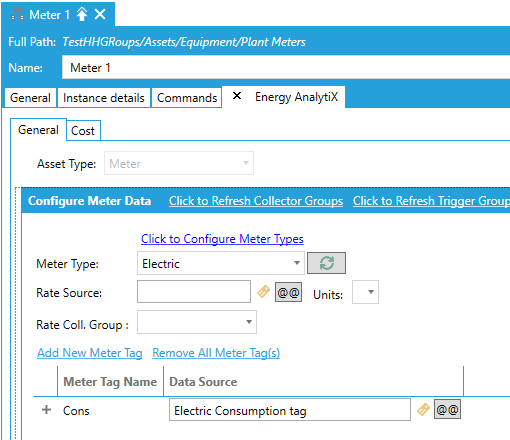 We can add energy consumption calculations in related assets where the calculation expression could involve consumptions from any of the two energy meters configured when adding energy calculations for electric meter type.