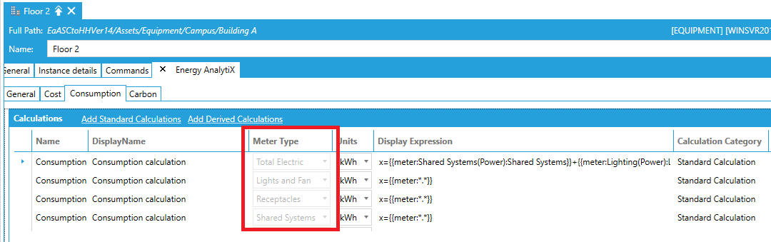 In the screenshot above, Total Electric is the virtual meter type we will use to aggregate all electric consumption (Lighting + Receptables + Shared Systems).