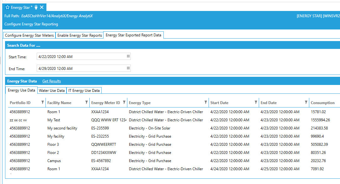 The user can pre-view exported Energy Star data by using the Energy Star Exported Report Data under the Energy Star node in Workbench