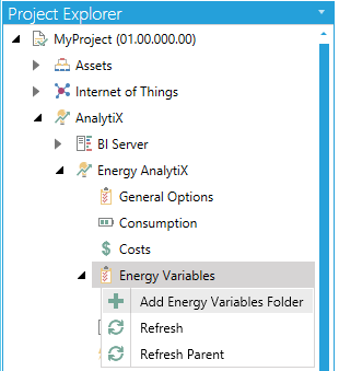 Right-click the Energy Variables node, then click on Add Energy Variables Folder in the pulldown menu, as shown below.