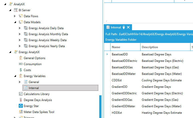 Note: Energy variables under the Internal folder cannot be edited by the end user.