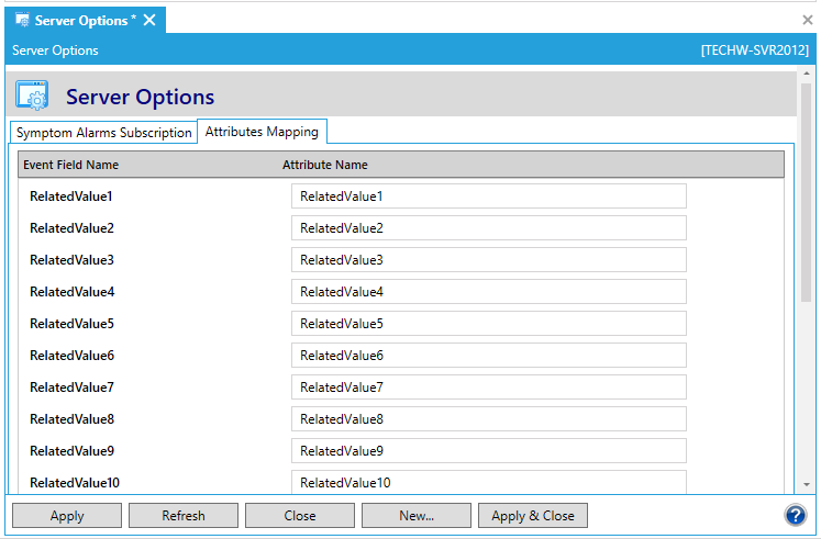The Attributes Mapping Tab, shown below, allows users to set the related values that can be viewed when associated faults are examined in the FDDWorX Viewer.