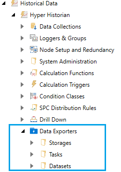 In Workbench, expand Historical Data > Hyper Historian > Data Exporters.