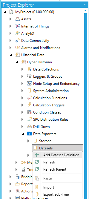 Add Dataset Definition from Project Explorer