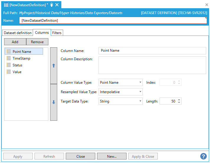 Dataset definition Tab