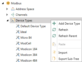 Most commonly available Modbus devices are already configured in the Modbus Point Manager’s Device Type list. However, if your device is not present in the list it can be added.