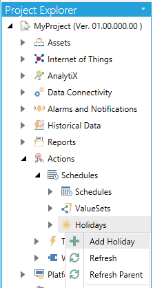 Creating a Holiday from the Project Explorer