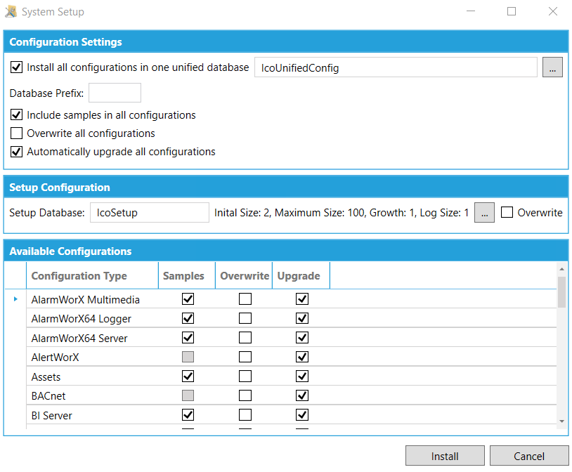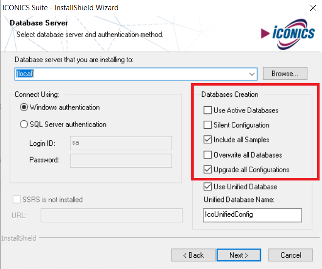 If you decided not to overwrite or upgrade these databases during the install, you will have to upgrade them after the installation, starting with the ICONICS Security configuration.