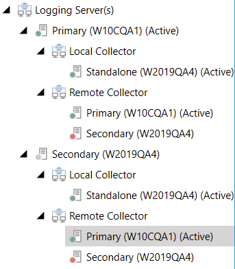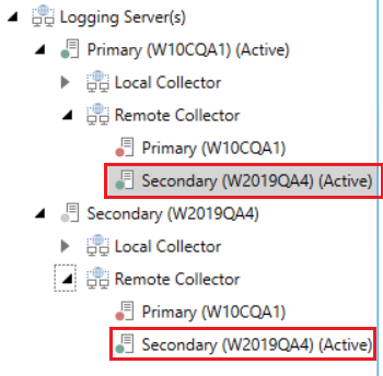 Verify that both primary and secondary loggers list the primary collector as active.
