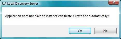 It may inform you, that the Application does not have an instance certificate and may ask you if you want to create it automatically. Select Yes.