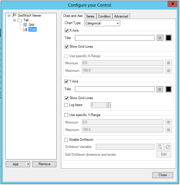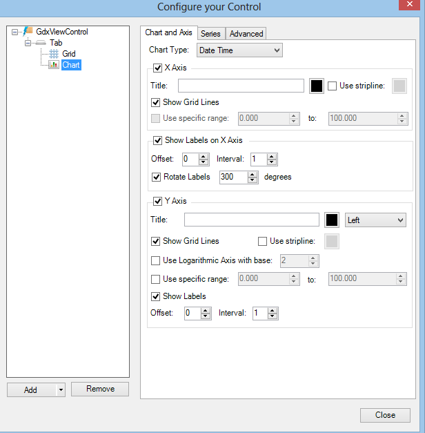A GridWorX Chart's Chart and Axis Tab