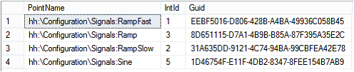 Table name is HReader_PointNames and database name is HH_IcoUnifiedConfig.