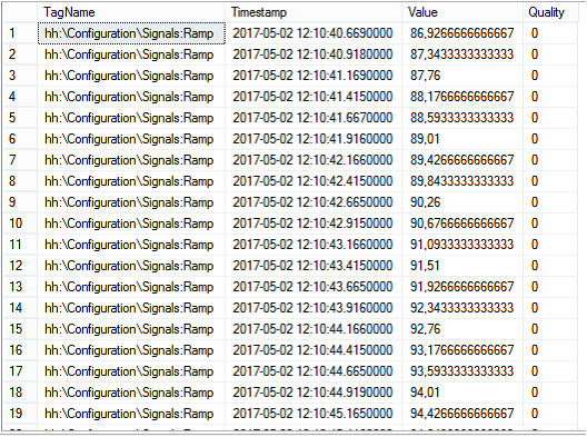 Read values are stored in HH_IcoUnifiedConfig configuration database, in a table with “OutputTable” name. Configuration without input database table can’t take advantage of tag ids thus values in the output table will be identified by related point names.