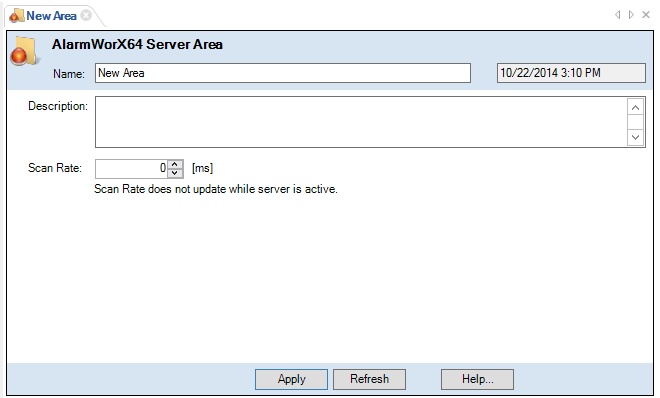 NOTE: By default, the scan rate for Areas is set to 0 milliseconds. This 0 means that the Area-specific scan rate is set to Off and the Area will use the default scan rate.
