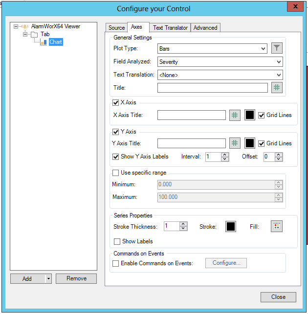 Text Translator tab: Refer to Text Translator Tab Options in AlarmWorX.