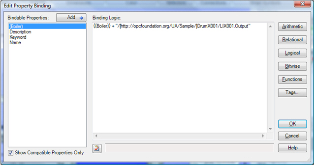 In this case, a single Smart Property can be created for the common root (Boiler), and the descendant properties can be bound to that Smart Property as a combination of the Smart Property value and the remaining unique segments of the tag. Click here to see an example of the Edit Property Binding dialog box.
