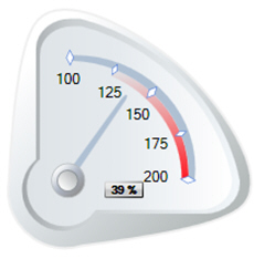 Go to Runtime mode the check the results. Note the low range equals to 100, high range equals to 200 and the labels between low and high range are automatically recalculated to reflect new ranges. Click here to see the gauge example.