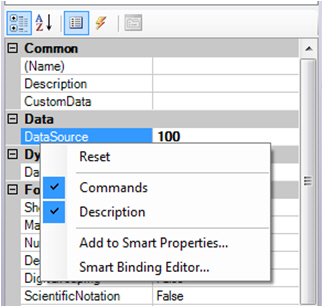 The option to perform automatic complex data binding is provided when converting a group to a Smart Symbol and appears as the Optimize hierarchical data sources check box option is selected all descendant objects of the group are examined for existing data source connections. All found data sources are analyzed to determine common hierarchical roots. Then a new Smart Property is added for each unique hierarchical root, and the descendant data source properties are automatically bound to that Smart Property by combining the Smart Property value (the common hierarchical root) with the remaining unique portion of the data source (as described above).