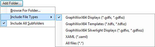 On the GraphWorX Design ribbon, select Insert Templates to Gallery from the Template menu Expand button. The Edit File List dialog box displays.