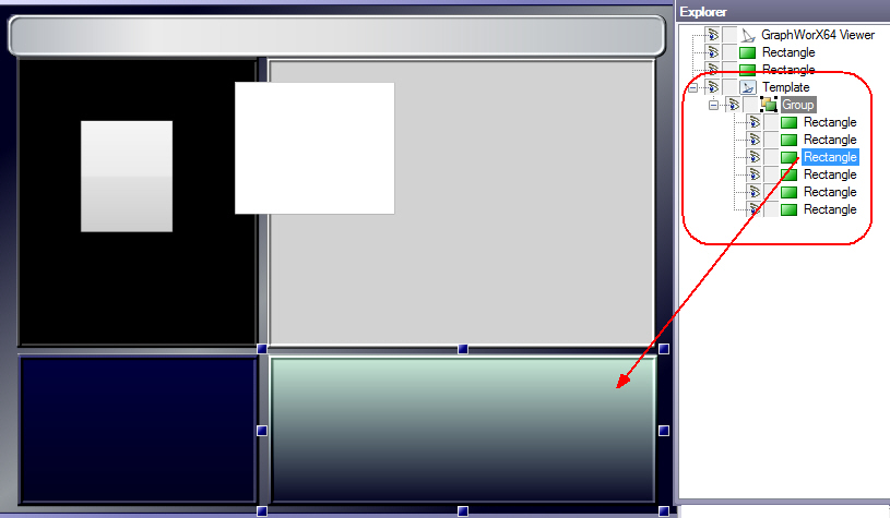 A template is comprised of a collection of display properties, objects and their formats, controls, dynamics, or any other GraphWorX64 elements that are applied to any display in the configuration mode. You can create templates for normal monitor displays and also for Windows Phone displays. Anything you can create in a GraphWorX64 display can be saved to a template file. When you apply a template to a display, all of the elements of the template are applied in a single layer behind all of the objects that are on the display and the template's elements can't be modified unless you are in the template group object in the Explorer window. If the template was saved with more than one layer of objects, then the template is applied with all of those objects combined into the template layer in the display it is applied to.