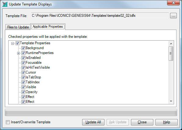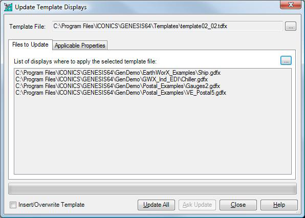 On the Update Template Displays dialog box, if you wish to overwrite the existing templates in all of the files and folders in the list, then select Insert/Overwrite Template check box.