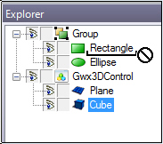 Each new display that is created has a two dimensional drawing surface defined by default. To add a three dimensional (3D) surface to a drawing you would click the 3D View button in the Shapes section of the 2D Home ribbon, and drag a 3D viewport on the surface. When the 3D viewport is active, a set of 3D primitives becomes available to you to allow you to create 3D drawings. There is a restriction that prevents the use of 2D objects in a 3D viewport, and vice versa. The Explorer enforces this restriction by preventing you from moving an object from 2D to 3D or the other way around. You see a cursor with a slash in it indicating that the operation is disallowed.
