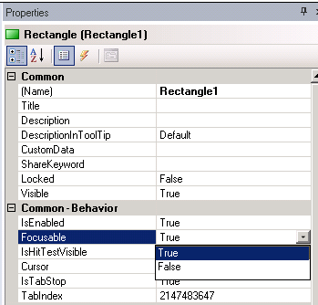 IsHitTestVisible - This property is used when scripting needs to receive mouse input from the object. True allows the object to receive focus and reports mouse-click events from runtime users, such as MouseLeftButtonDown. If the value is False, no mouse-click events are reported.